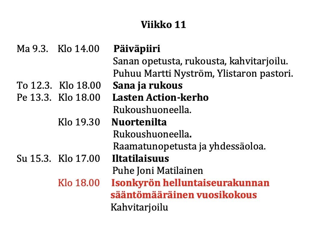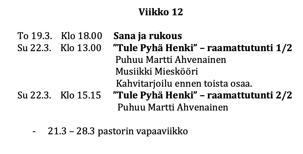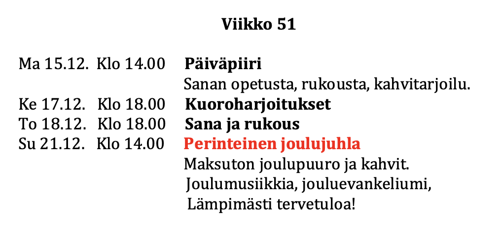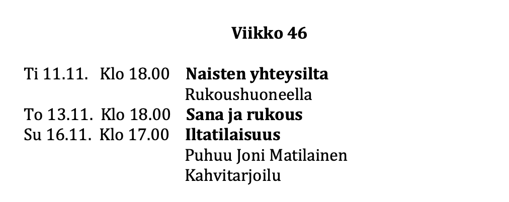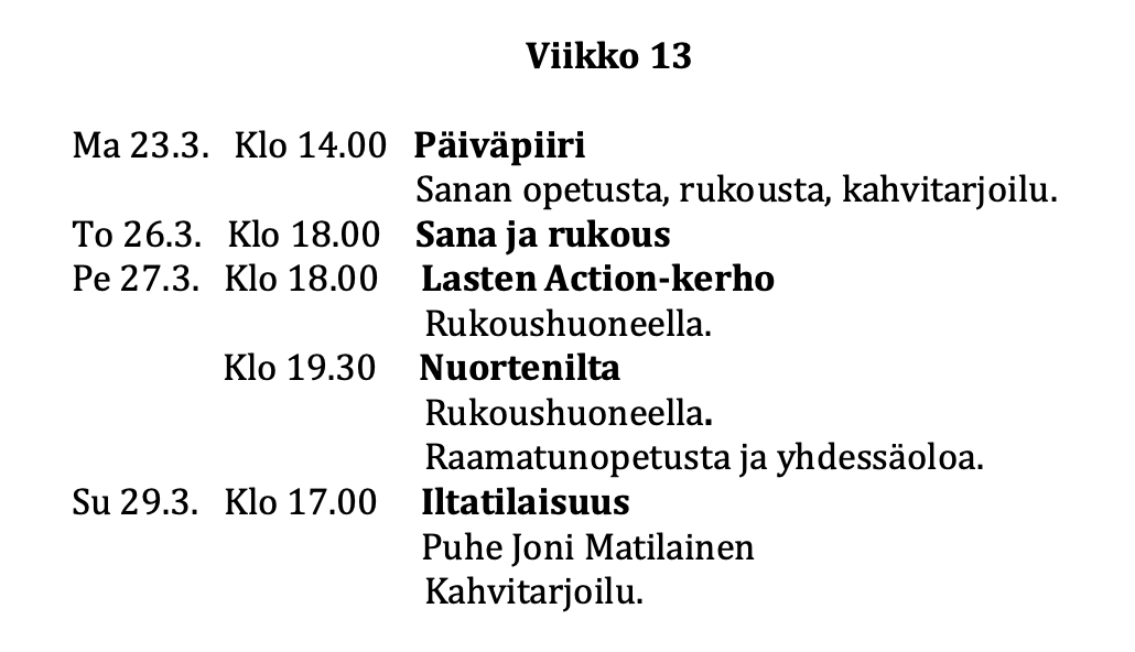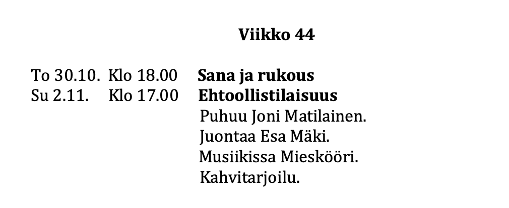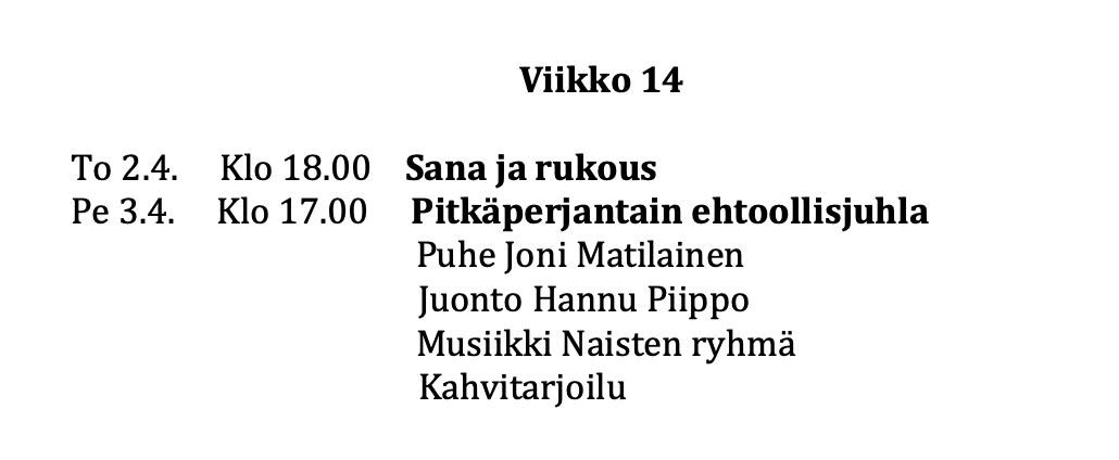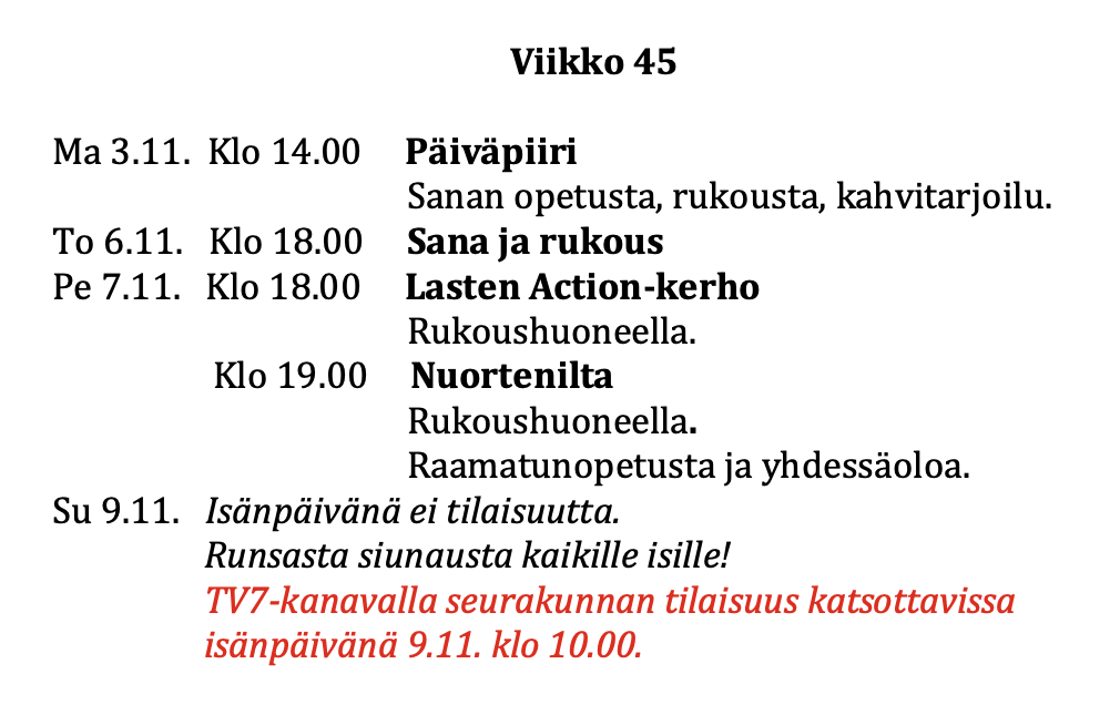 - Tältä sivulta löydät viikko-ohjelman ja muuta ajankohtaista -